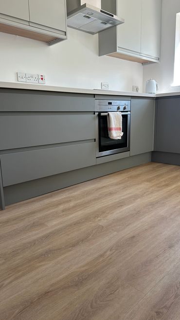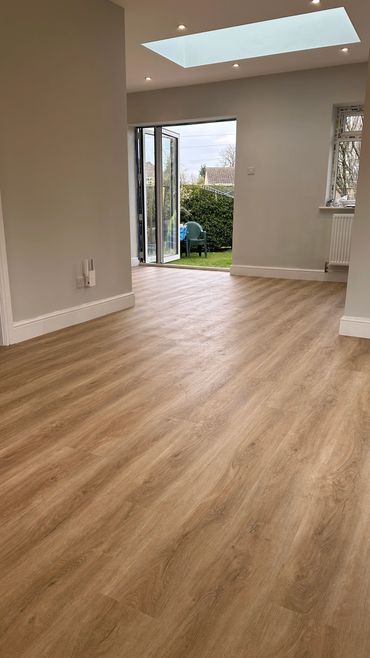 We were pleased to work with Abbey Renovations on this stylish property in Calverton Down, Bath. The kitchen and dining area were fitted with a straight plank LVT, chosen for its sleek appearance and practicality in busy living spaces.
