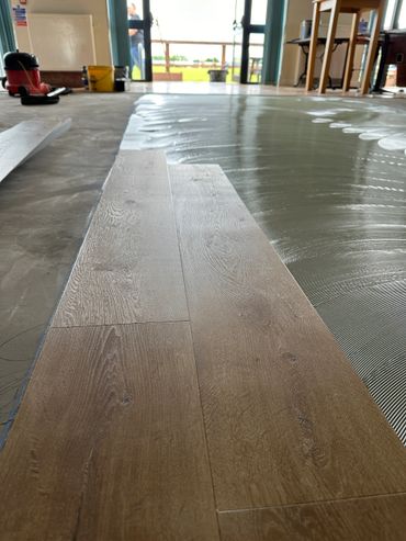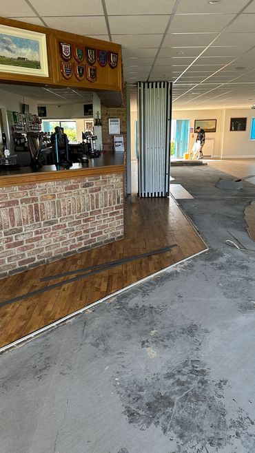 The project began with the removal of the existing floor coverings, followed by full subfloor preparation, including latex screeding to ensure a smooth, level surface ready for the new flooring. Once prepped, we installed the Oneflor LVT, delivering a clean, durable, and professional result that will stand up to heavy footfall while elevating the look of the club’s interior.
